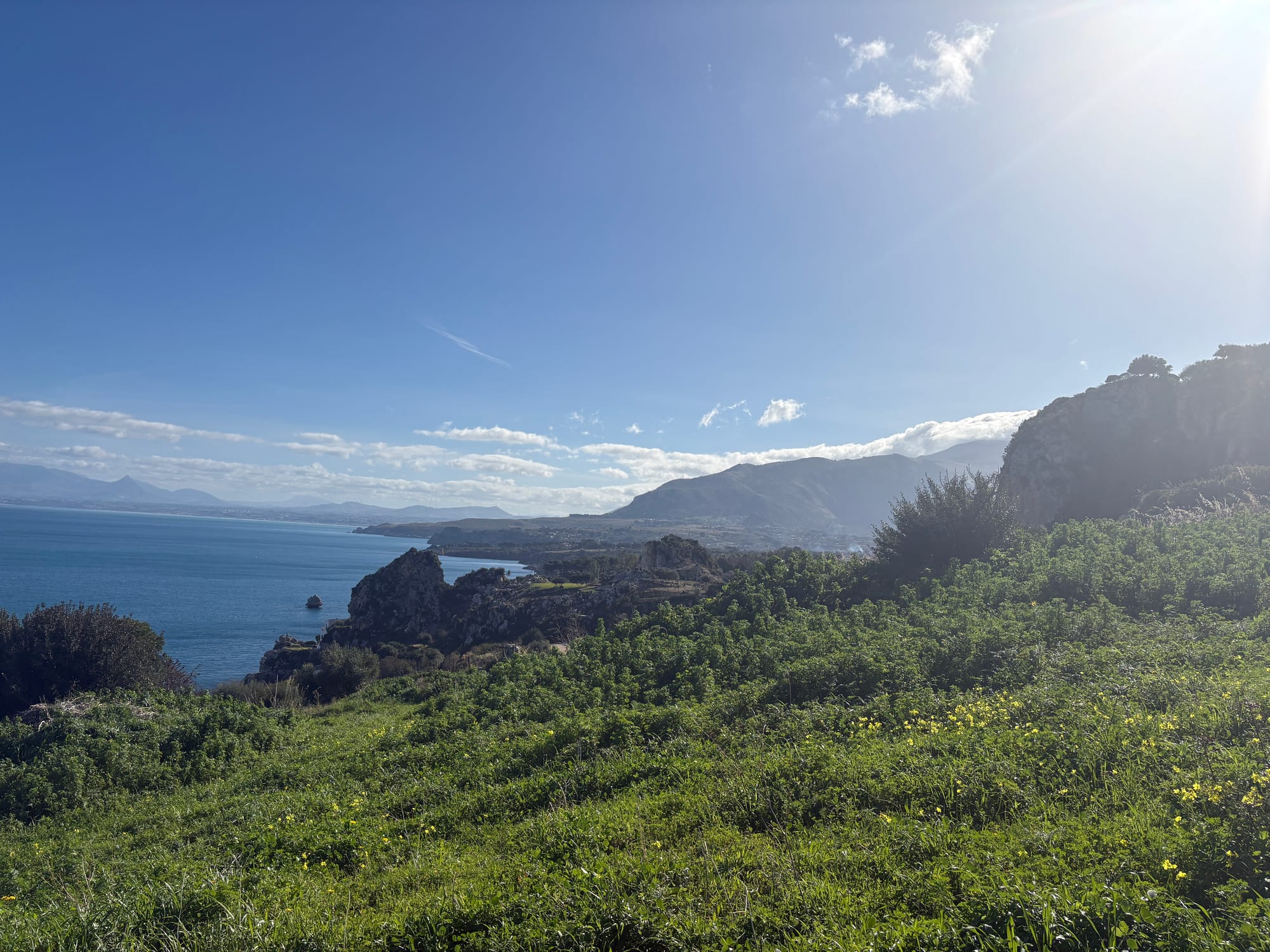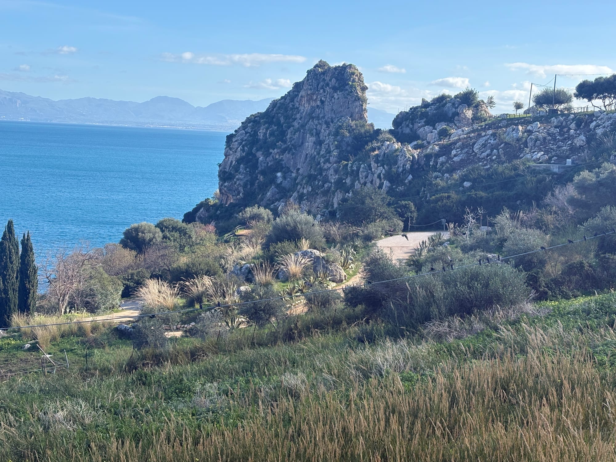 Scopello is one of those places that feels immediately familiar from photos, and in winter it leans fully into that dramatic, quiet side. Almost everything was closed when we visited, but the landscape alone still makes the stop worthwhile. Empty beaches, cliffs, sea, and a kind of stillness you rarely get in high season.